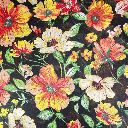 Descrição Tecido Chita de Algodão (Meio Metro) Ref. 3160V2 - Preto/Laranja/Verde