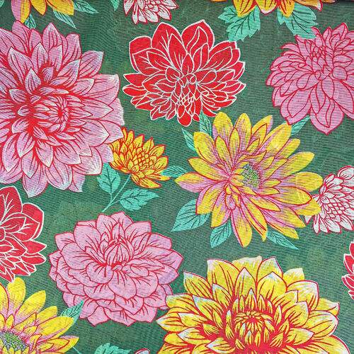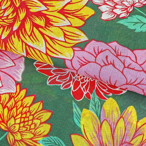 Descrição Tecido Chita de Algodão (Meio Metro) Ref. 3169V2 - Verde/Rosa/Amarelo