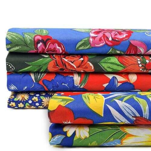 Estampa: Variedade de padrões vibrantes e coloridos típicos da chita, que trazem um toque alegre e tropical.