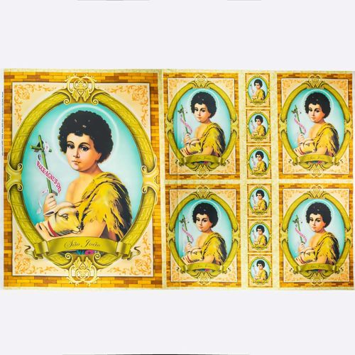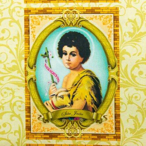 Tecido de excelente qualidade com linda estampa de São João em 11 quadros de tamanhos variados.