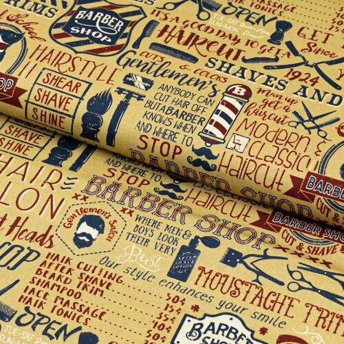 NCM Tecido de Algodão Estampa Digital (Meio Metro) - Barbearia Hipster