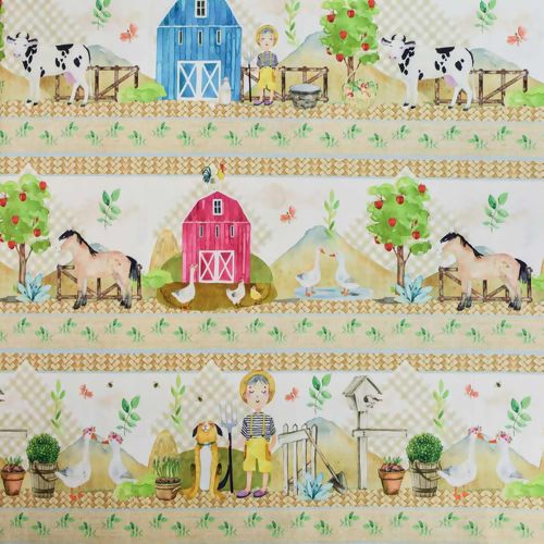 Tecido com Estampa Digital em Faixas Tema Fazendinha