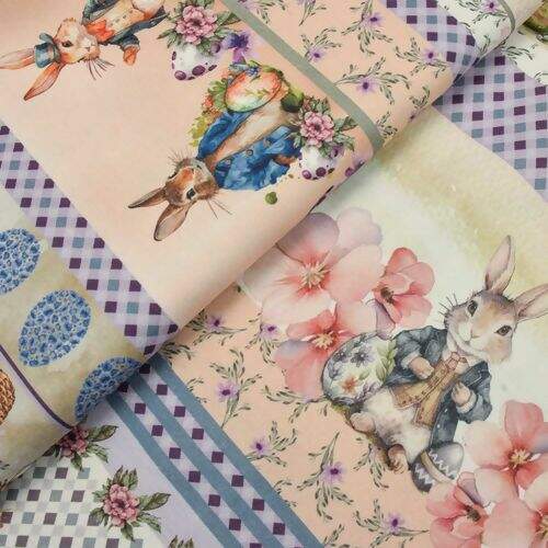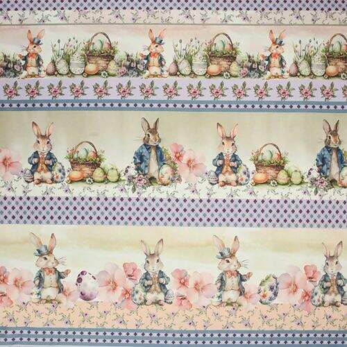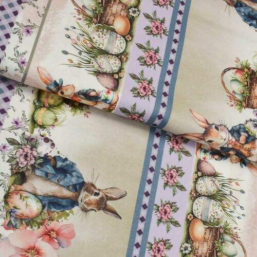 Ficha técnica Tecido de Algodão Estampa Digital (Meio Metro) - Páscoa Faixas