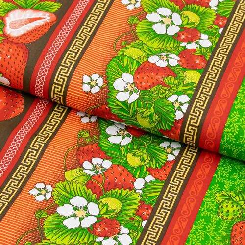 fornecedor_bling Tecido de Algodão Estampado Círculo (Meio Metro) - Cor 2404 Barrado Morangos