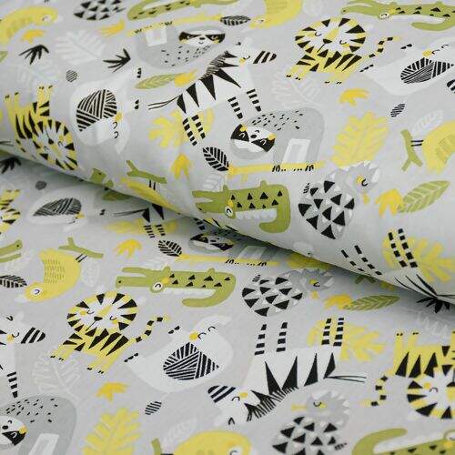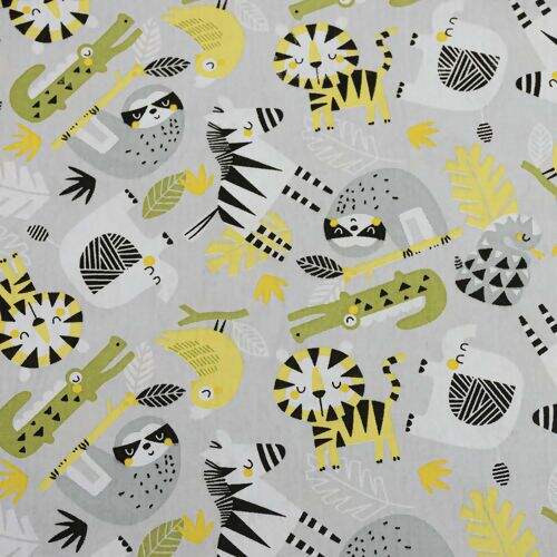 Tecido de Algodão Estampado (Meio Metro) - Floresta Fundo Cinza