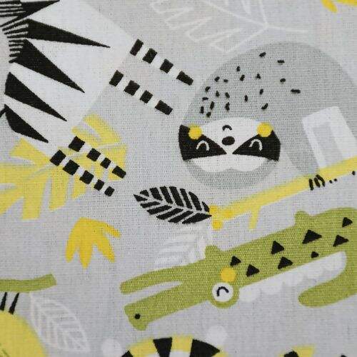 Descrição Tecido de Algodão Estampado (Meio Metro) - Floresta Fundo Cinza