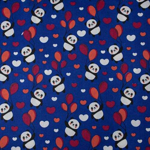 Tecido de Algodão Estampado (Meio Metro) - Pandas Bexigas Fundo Azul