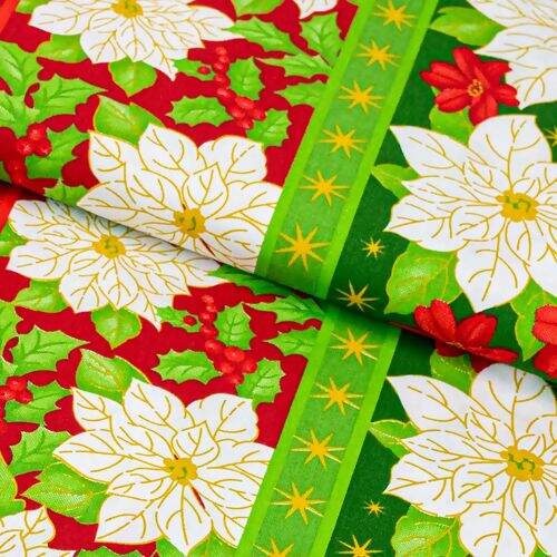 Tecido de Algodão Estampado (Meio Metro) - 2410 Natal Barrado Flor Espirito Santo