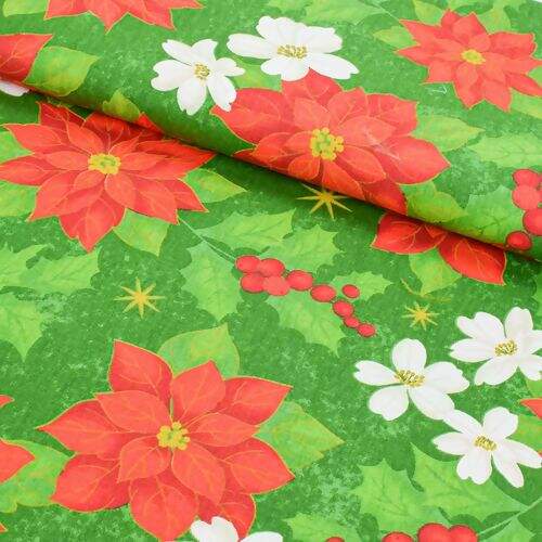 Descrição Tecido de Algodão Estampado (Meio Metro) - 2411 Natal Floral Poinsétia