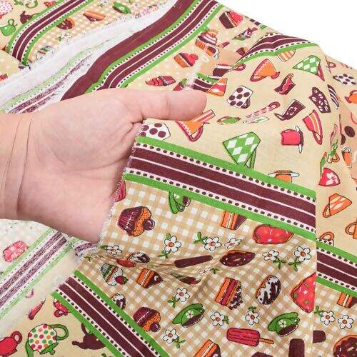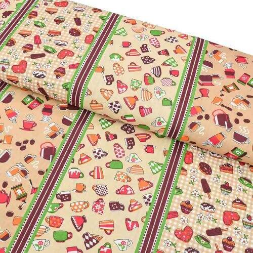 Descrição Tecido de Algodão Estampado (Meio Metro) - Barrado Cozinha Fundo Bege