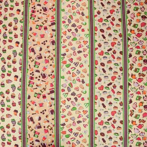 Tecido 100% algodão com estampa de barrado ou faixas com tema Cozinha.