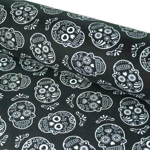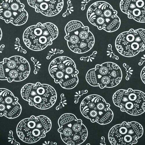 Descrição Tecido de Algodão Estampado (Meio Metro) - Caveira Preto/Branco