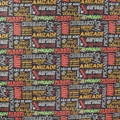 Tecido de Algodão Estampado (Meio Metro) - Churrasco Colorido