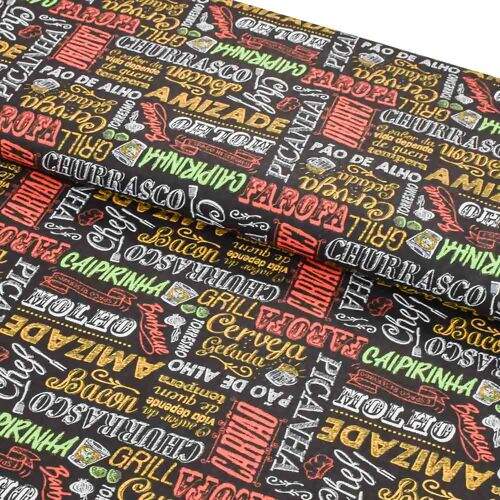 Descrição Tecido de Algodão Estampado (Meio Metro) - Churrasco Colorido