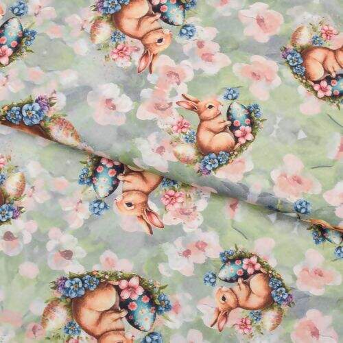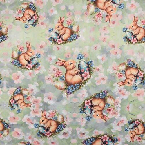 Tecido de Algodão Estampado (Meio Metro) - Coelhinho da Páscoa Fundo Verde