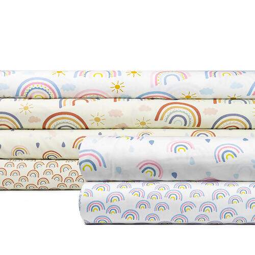 Tecido de algodão com tema de Arco-íris ideal para artesanato, decoração, costura criativa, confecção infantil e tudo o que sua criatividade mandar!