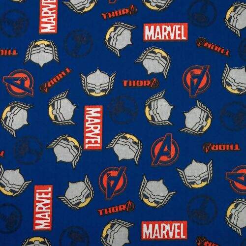 Descrição Tecido de Algodão Estampado (Meio Metro) - Coleção Marvel Thor Fundo Azul