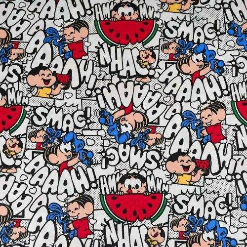 fornecedor_bling Tecido de Algodão Estampado (Meio Metro) - Coleção Turma da Mônica Onomatopeia