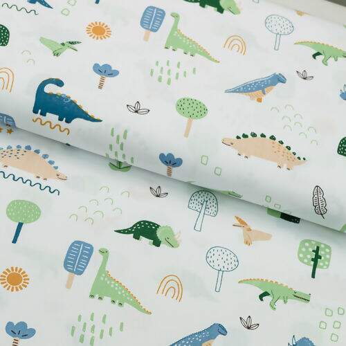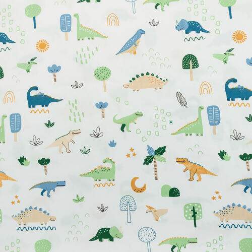 Descrição Tecido de Algodão Estampado (Meio Metro) - Dino Fundo Branco