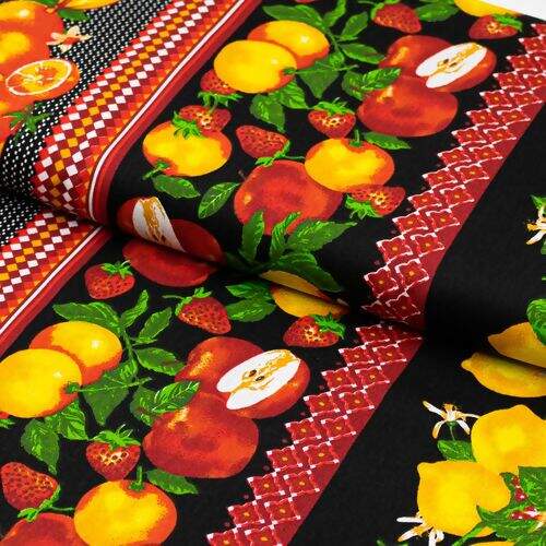 Descrição Tecido de Algodão Estampado (Meio Metro) - Faixas Frutas