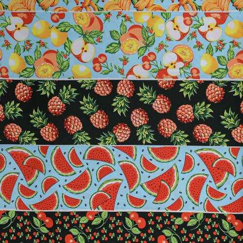 NCM Tecido de Algodão Estampado (Meio Metro) - Faixas Salada de Frutas