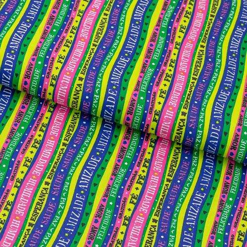 Informações Têxteis Tecido de Algodão Estampado (Meio Metro) - Fitinhas Coloridas