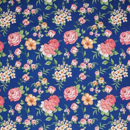 Descrição Tecido de Algodão Estampado (Meio Metro) - Floral Fundo Marinho