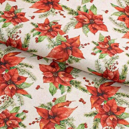 Tecido tricoline 100% algodão com linda estampa de flores natalinas exclusiva para seu artesanato e costura!