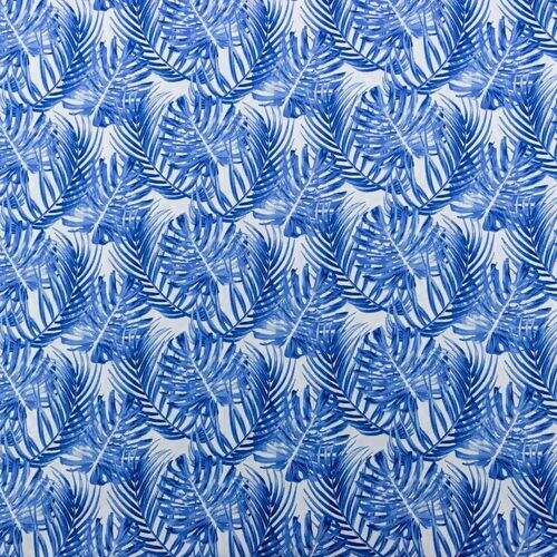 NCM Tecido de Algodão Estampado (Meio Metro) - Folhagem Tropical Azul/Branco