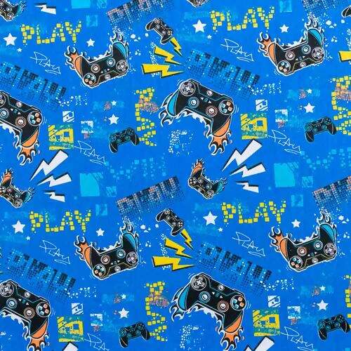 Tecido de Algodão Estampado (Meio Metro) - Game Fundo Azul