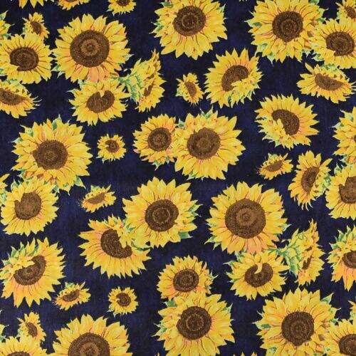 Tecido de Algodão Estampado (Meio Metro) - Girassol Fundo Marinho