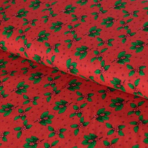Informações Têxteis Tecido de Algodão Estampado (Meio Metro) - Holly Pequeno Vermelho