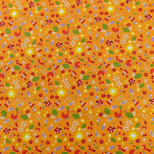 Tecido de Algodão Estampado (Meio Metro) - Jardim Laranja