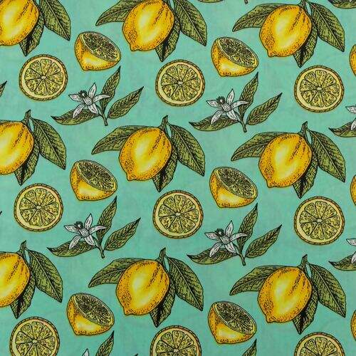 Tecido de Algodão Estampado (Meio Metro) - Limão Floral Verde Água