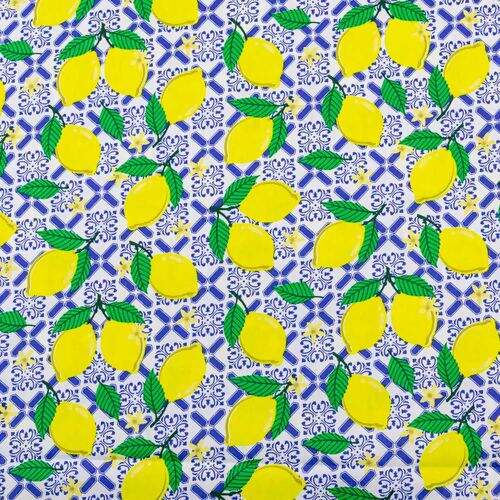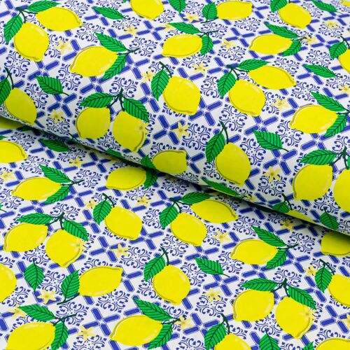 Tecido de Algodão Estampado (Meio Metro) - Limão Siciliano Azulejo