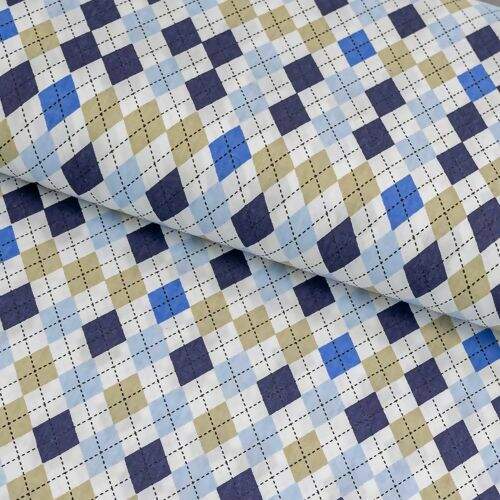 Descrição Tecido de Algodão Estampado (Meio Metro) - Losango Azul/Bege