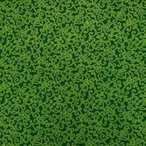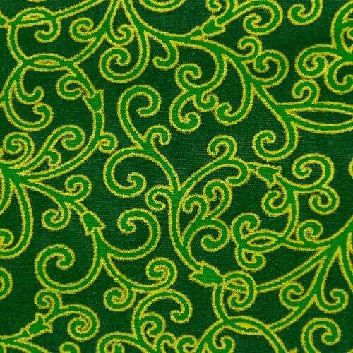 Tecido de Algodão Estampado (Meio Metro) - Natal Arabesco Verde/DouradoTecido de Algodão Estampado Verde e Dourado