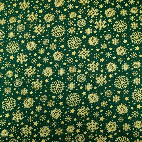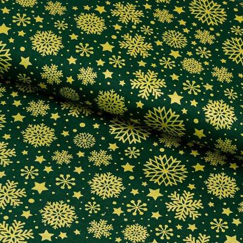 Descrição Tecido de Algodão Estampado (Meio Metro) - Natal Flocos de Neve Verde e Dourado
