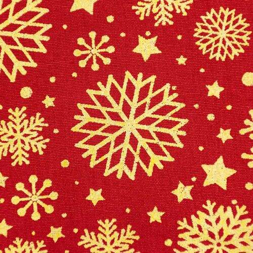 Descrição Tecido de Algodão Estampado (Meio Metro) - Natal Flocos de Neve Vermelho e Dourado