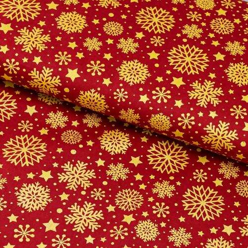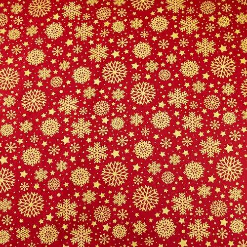 NCM Tecido de Algodão Estampado (Meio Metro) - Natal Flocos de Neve Vermelho e Dourado
