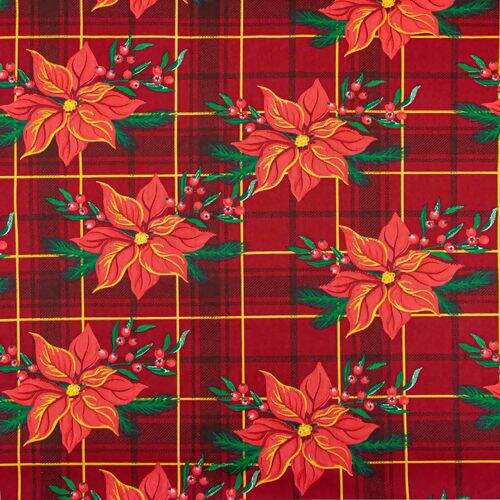 Informações Têxteis Tecido de Algodão Estampado (Meio Metro) - Natal Floral e Xadrez Vermelho