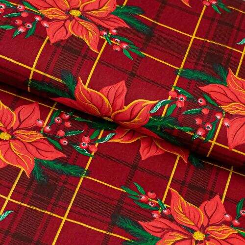 Tecido de Algodão Estampado (Meio Metro) - Natal Floral e Xadrez Vermelho