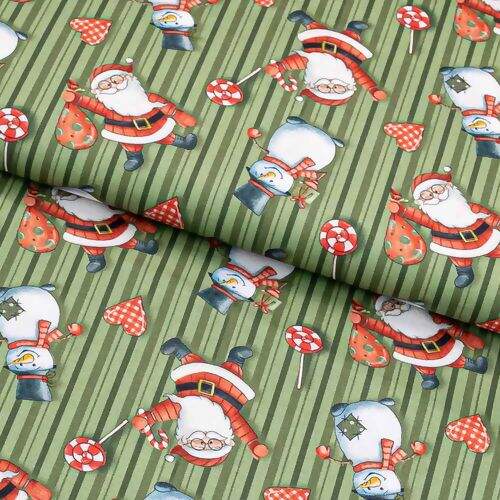 Tecido de Algodão Estampado (Meio Metro) - Natal Noel e Snow Fundo Verde