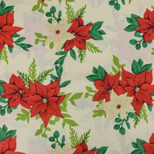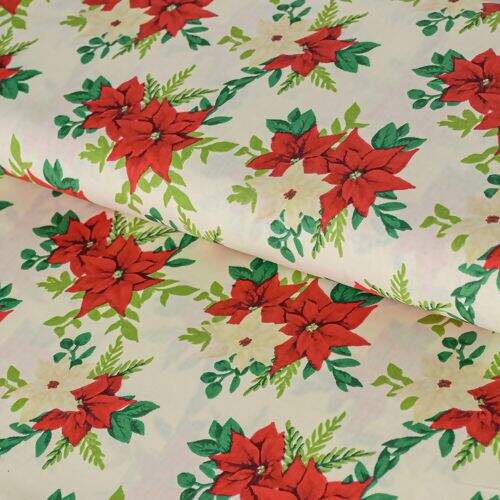 Tecido de Algodão Estampado (Meio Metro) - Natal Poinsétia Média Fundo Bege