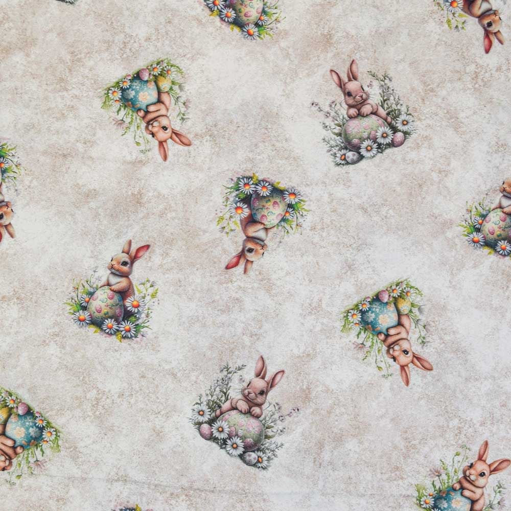 Tecido de Algodão Estampado (Meio Metro) - Páscoa Coelhinhos Margarida
