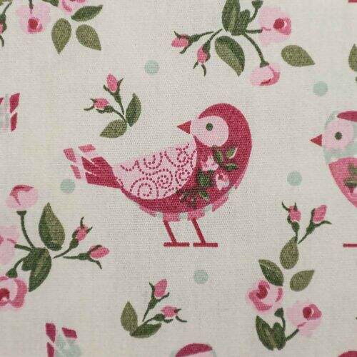 Descrição Tecido de Algodão Estampado (Meio Metro) - Pássaros Fundo Bege