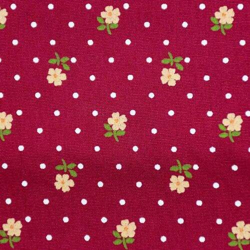 fornecedor_bling Tecido de Algodão Estampado (Meio Metro) - Poá Floral Bordô