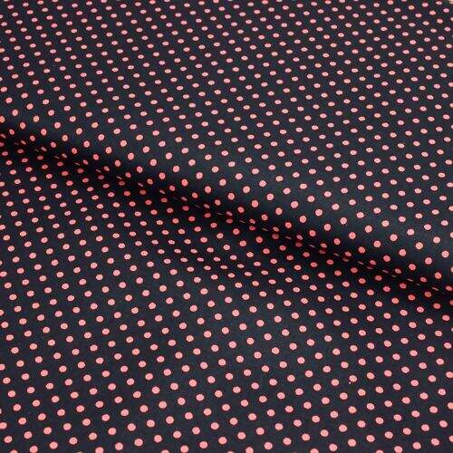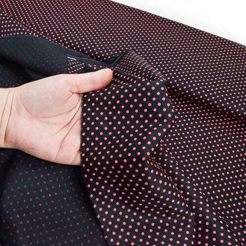 A estampa de bolas vermelhas sobre o fundo preto confere um ar de elegância e estilo às suas peças. É perfeito para confeccionar roupas infantis, saias, blusas, bolsas e outros itens de moda com um toque moderno.