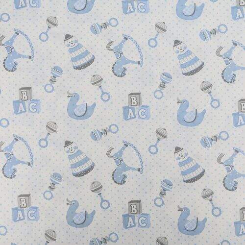 Tecido de Algodão Estampado (Meio Metro) - Primeiros Brinquedos Azul