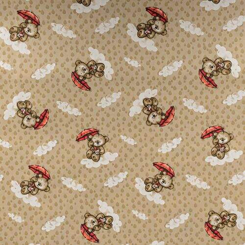 Tecido de Algodão Estampado (Meio Metro) - Ursinho Fundo Bege